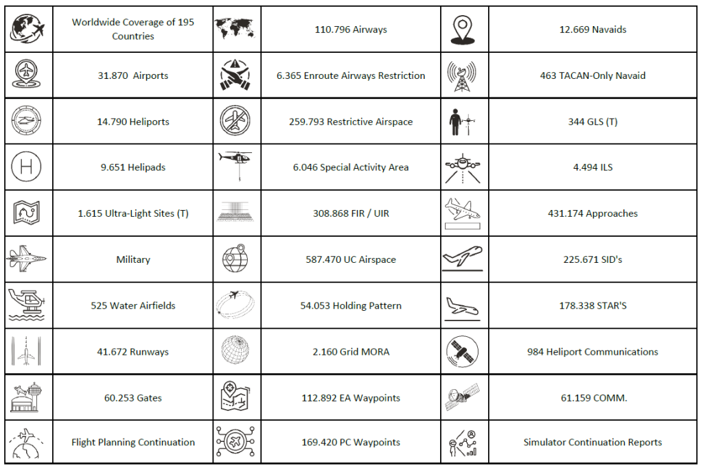 For each update and change, every effort is made to ensure the data passed our quality system and meet the needs of EU Regulation 2017/373 as well as RTCA DO-200 and EUROCAE ED-76, and final outcome containing the most up to date, complete and reliable information available as per states publications.