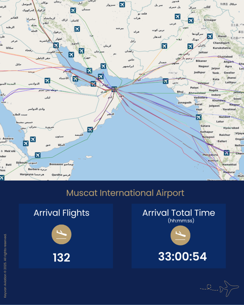 In just 24 hours, ) Muscat International Airport handled 132 arrival flights and 153 departure flights.