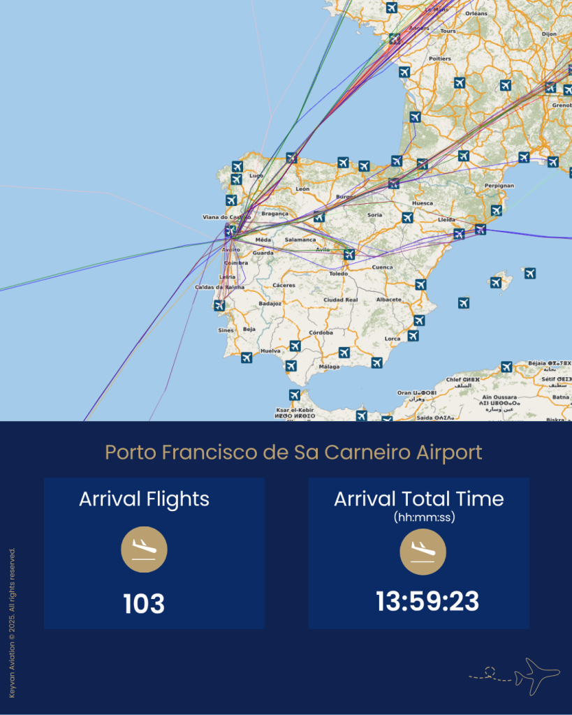 In just 24 hours, ) Porto Francisco de Sa Carneiro Airport handled 103 arrival flights and 105 departure flights.