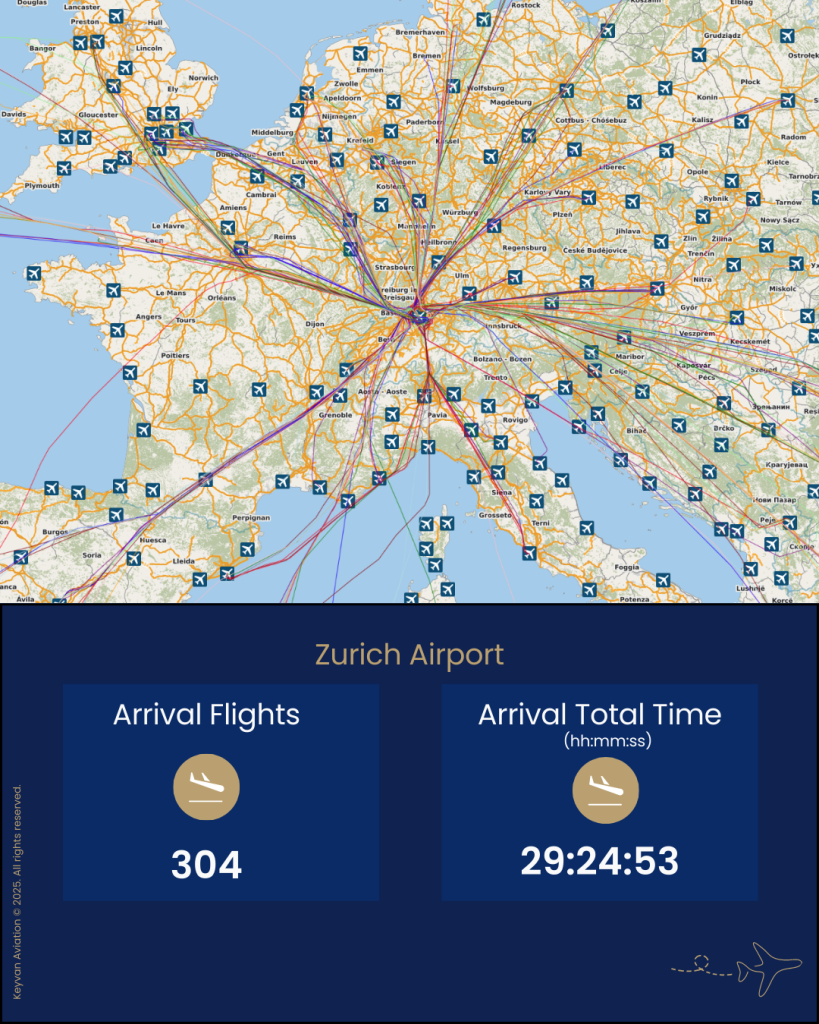 In just 24 hours, Zurich Airport handled 304 arrival flights and 324 departure flights.
